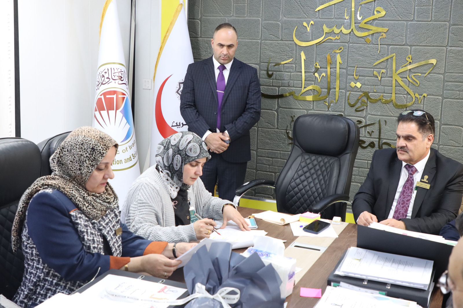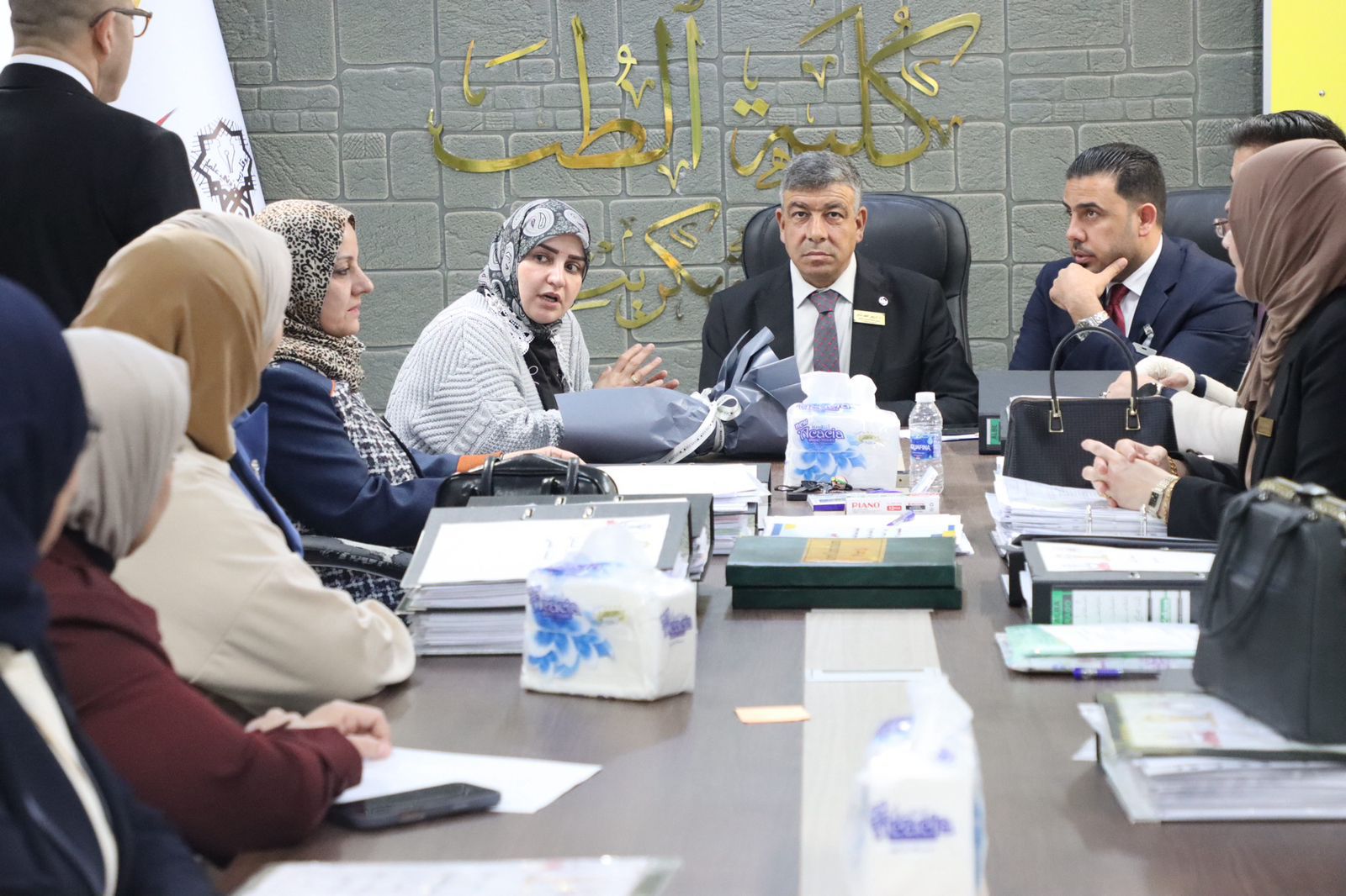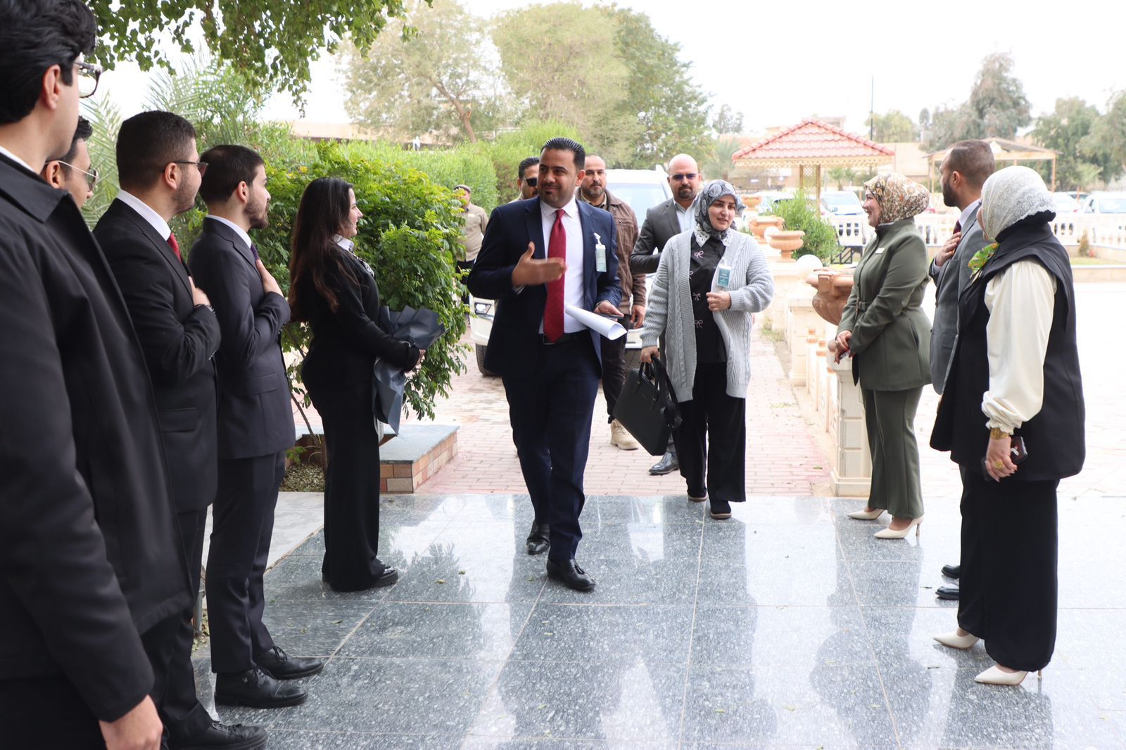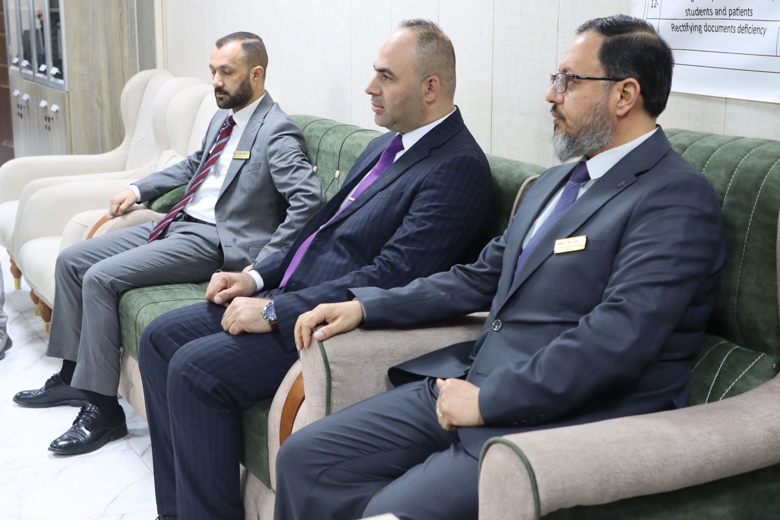 وكان في استقبال الفريق الوزاري السيد عميد كلية الطب الأستاذ الدكتور وسام سهيل نجم، يرافقه السادة معاونو العميد وأعضاء مجلس الكلية، حيث رحّب بالوفد الزائر، مؤكداً حرص الكلية على الالتزام بمعايير الجودة والاعتماد المؤسسي، والعمل وفق توجيهات الوزارة ورؤية الجامعة.